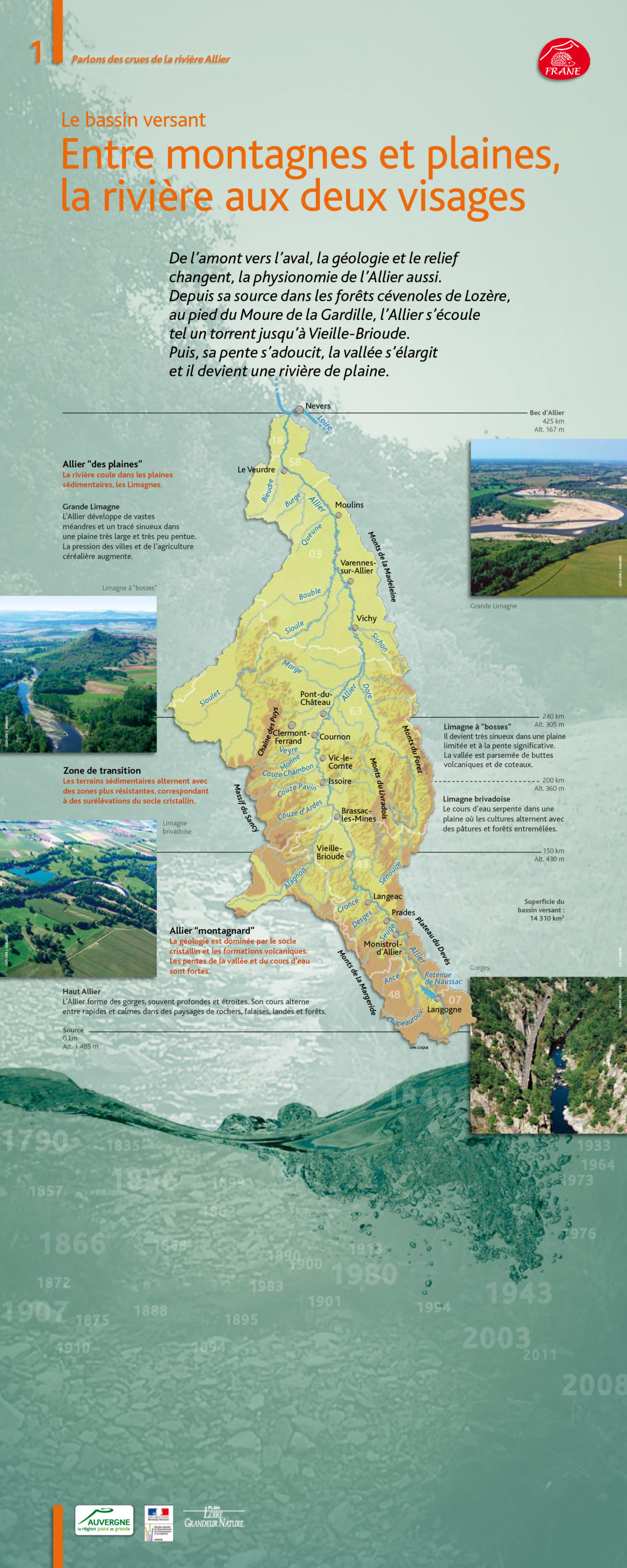 De par les aménagements et ses activités, l’Homme impacte les phénomènes de crues. L’occupation des sols des bassins versants et des plaines inondables modifie l’écoulement naturel des eaux de pluie. Aussi, les aménagements et les actions sur les cours d’eau influencent fortement leur fonctionnement naturel et contribuent ainsi à aggraver les risques de débordement. En occupant les zones inondables, l’Homme s’expose à des inondations, deux villes sont particulièrement exposées : Vichy et Moulins.