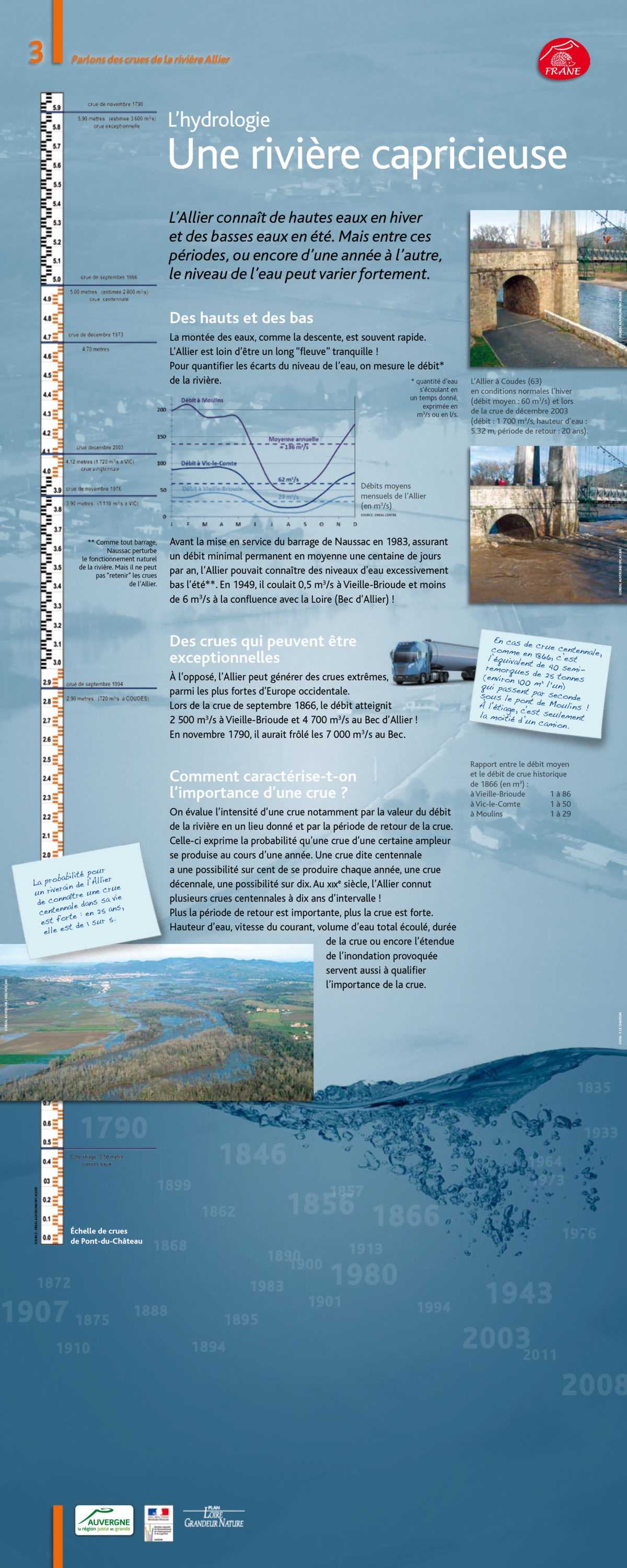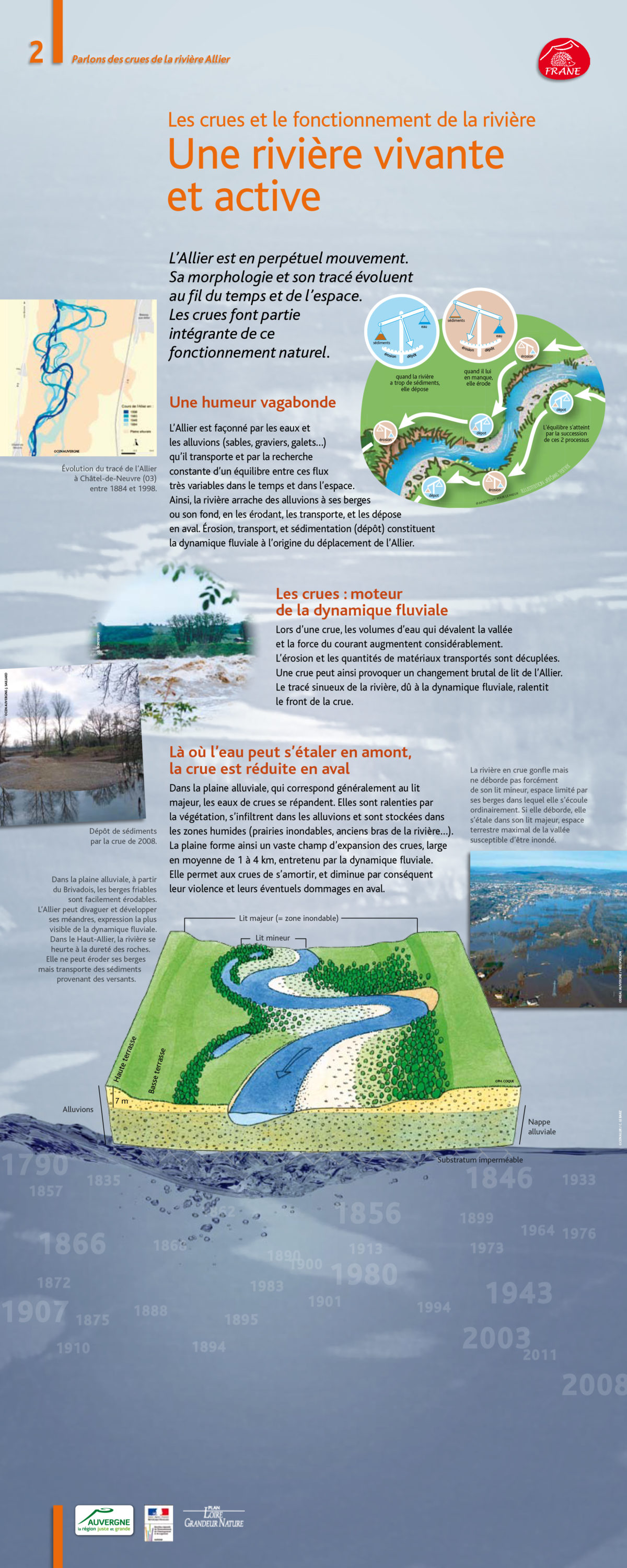 Les crues sont des phénomènes naturels inévitables et nécessaires au bon fonctionnement du cours d’eau et de ses écosystèmes. Ce sont des processus morpho-dynamiques intenses qui permettent la régénération des milieux vieillissants, la création de vastes grèves, des érosions importantes… La capacité des crues à créer une grande mosaïque de milieux naturels (marais, bras morts, prairies inondables, grèves, atterrissements…) permet le développement d’une flore riche et variée et la création d’habitats diversifiés propices à accueillir les poissons, les oiseaux et autres espèces sauvages.